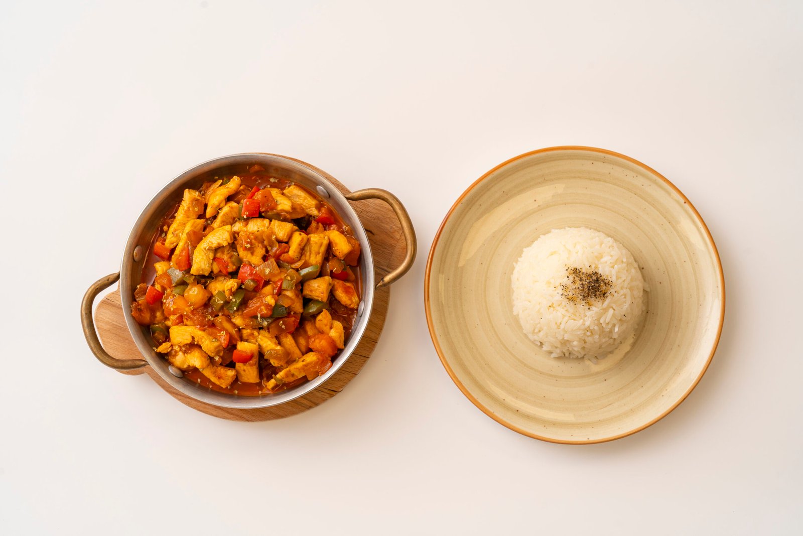 Chicken Sauté$20Tender pieces of sautéed chicken, cooked with tomatoes, peppers, onions, and aromatic spices, served with rice. Categories: LUNCH & DINNER, Meat Dishes