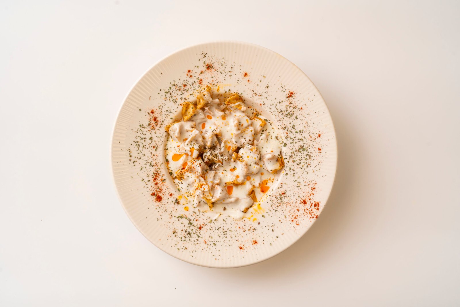 Tiny, handcrafted Turkish dumplings, filled with seasoned ground meat, served with garlic yogurt, drizzled with butter sauce, and topped with traditional spices. Unlike larger dumplings, Manti are very small and traditionally served in generous portions.