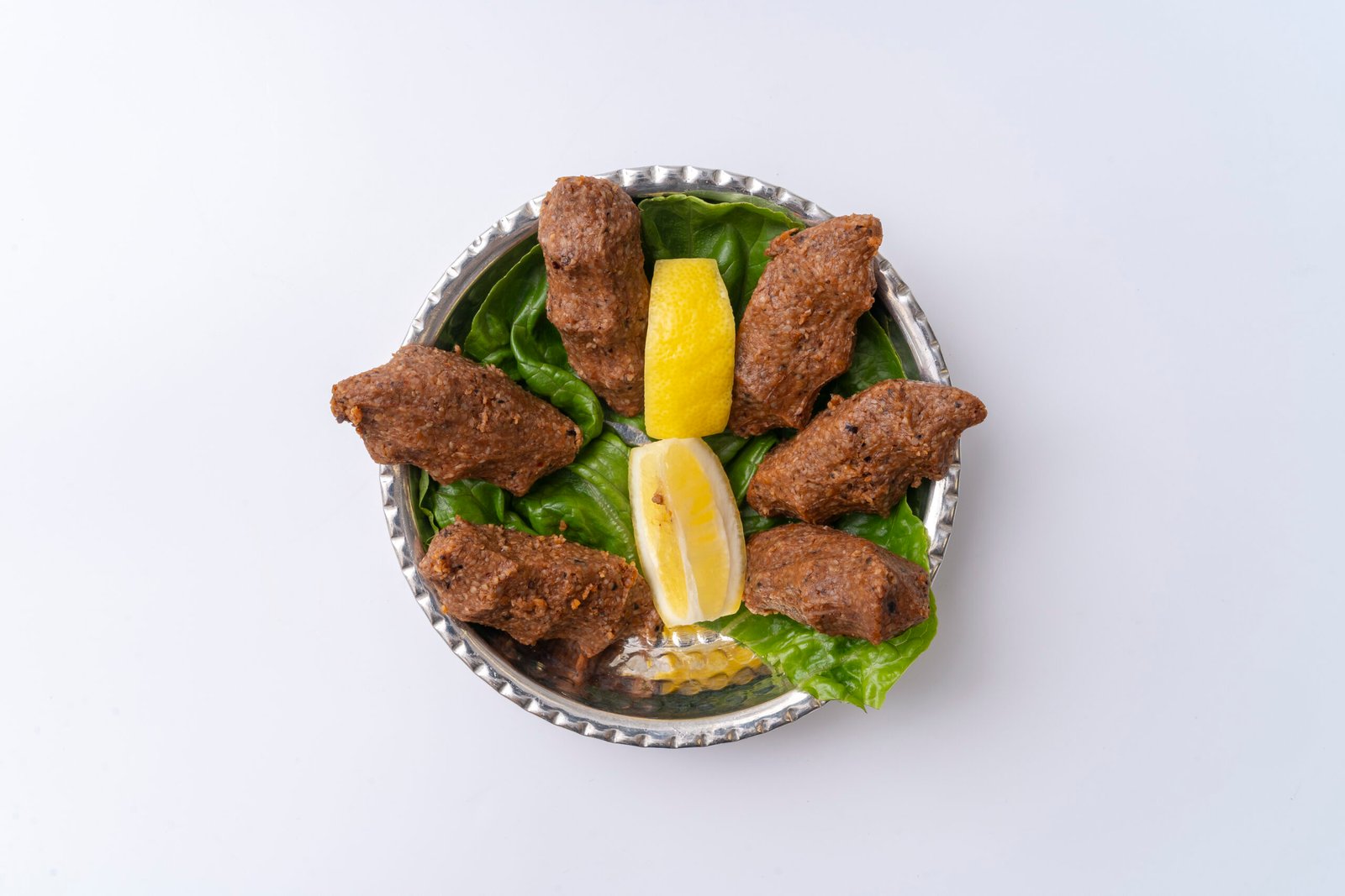 A Turkish specialty made with fine bulgur (cracked wheat grain), tomato paste, and a blend of spices, shaped into bite-sized pieces. Best when served with crispy lettuce, pomegranate sauce and lemon juice.